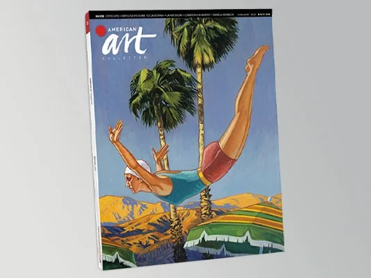 Issue 208 cover of American Art Collector featured Desert Dive, oil on canvas, 48 x 36 in.