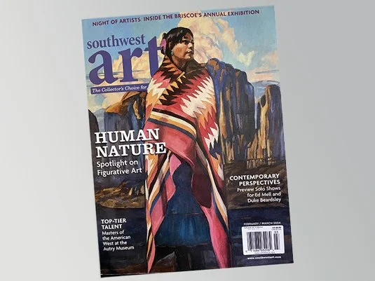 The February/March 2024 cover of Southwest Art featured Eye Dazzler, 2023, oil on canvas, 24 x 18 in.